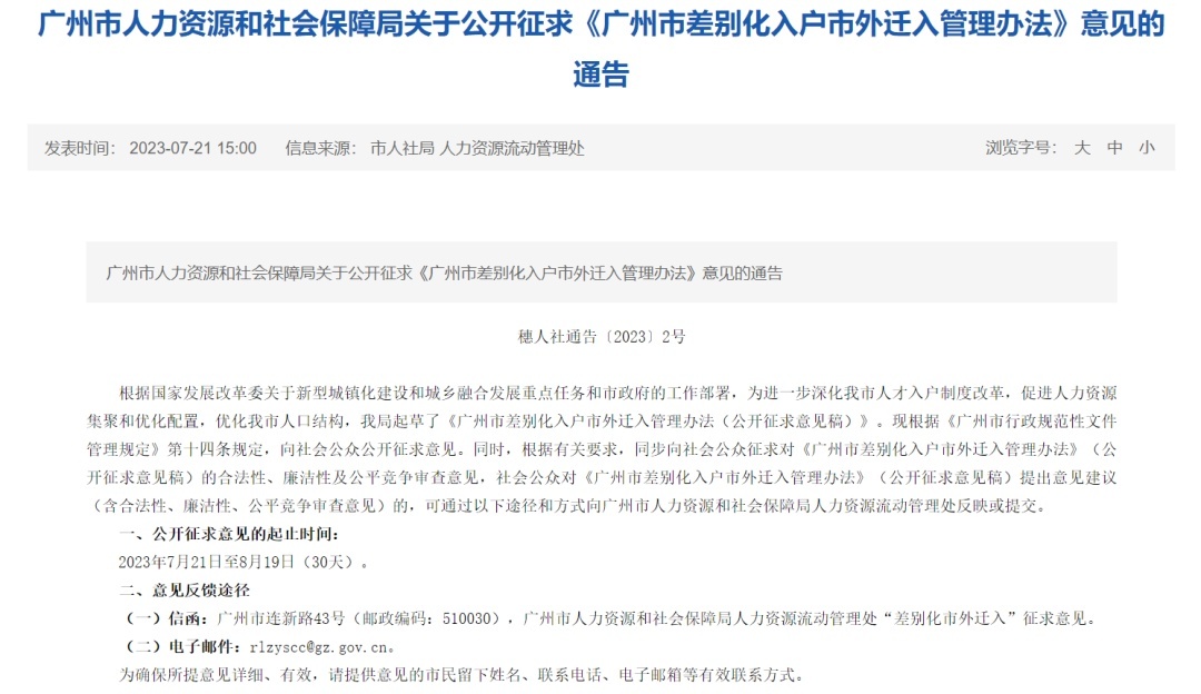 (一)信函:广州市连新路43号(邮政编码:510030),广州市东谈主力资源和社会保障局东谈主力资源头动处治处“差别化市外迁入”征求概念。